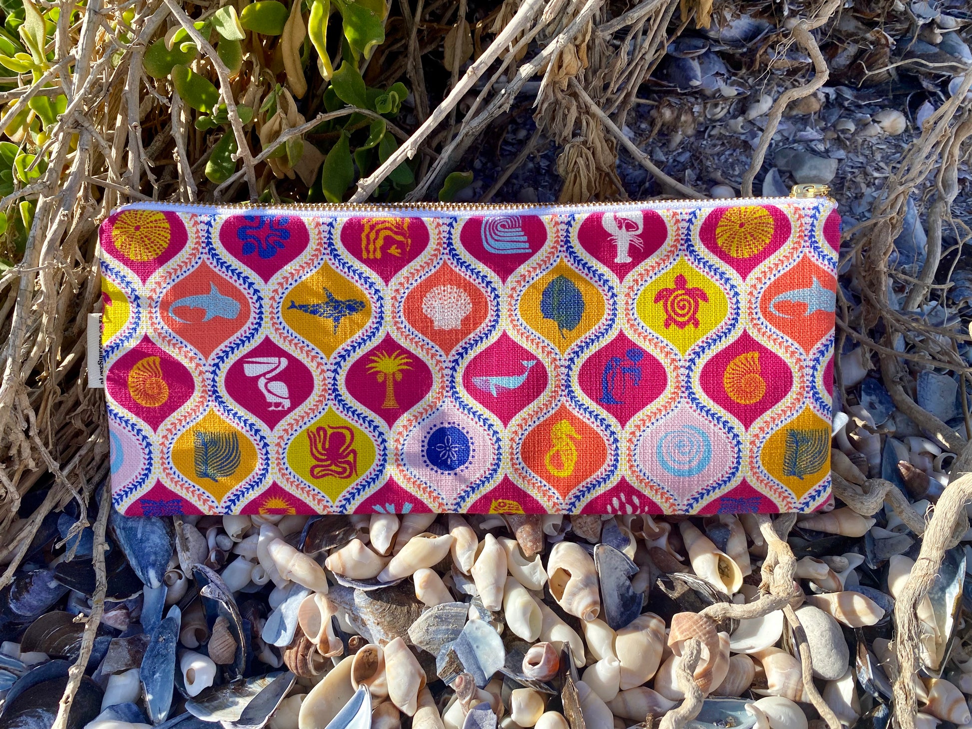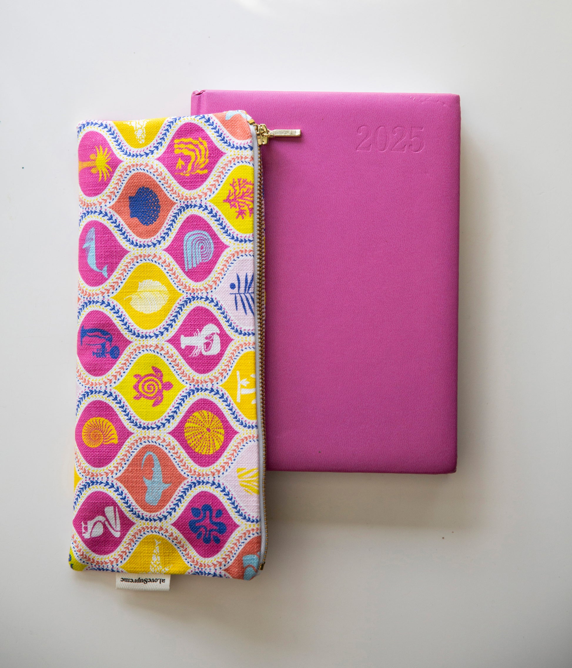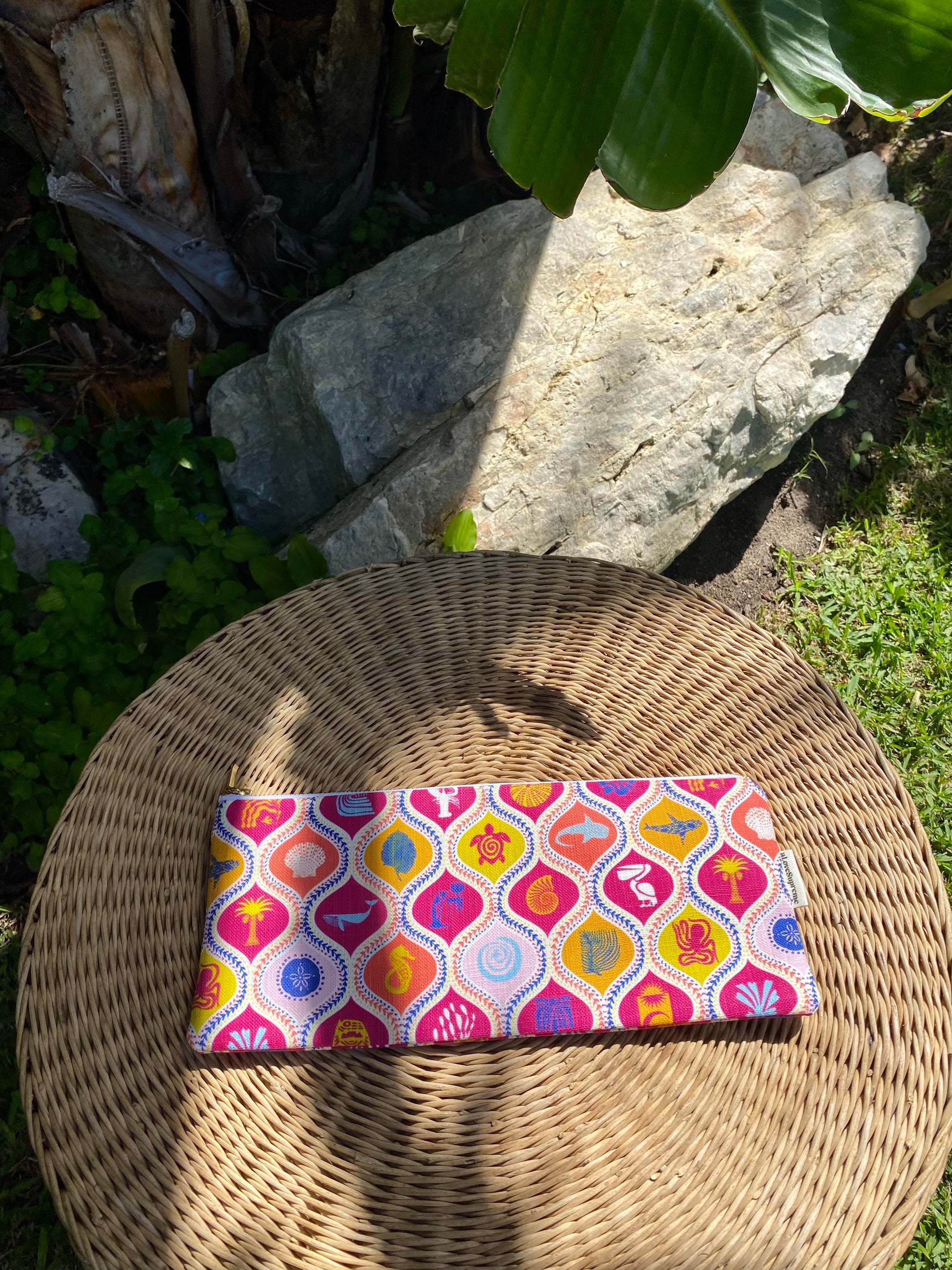 Federmappe aus recycelten Plastikflaschen in diversen Prints, auf Wunsch mit Logo