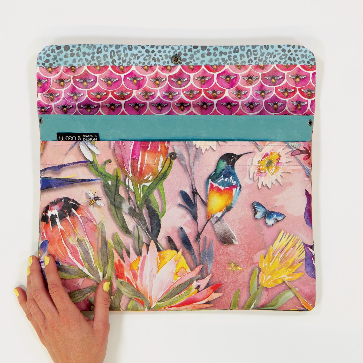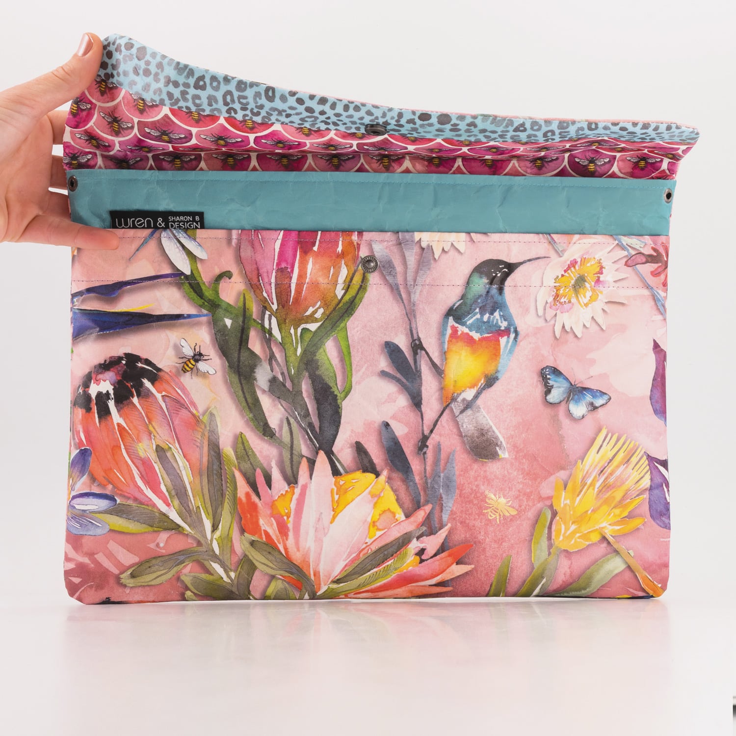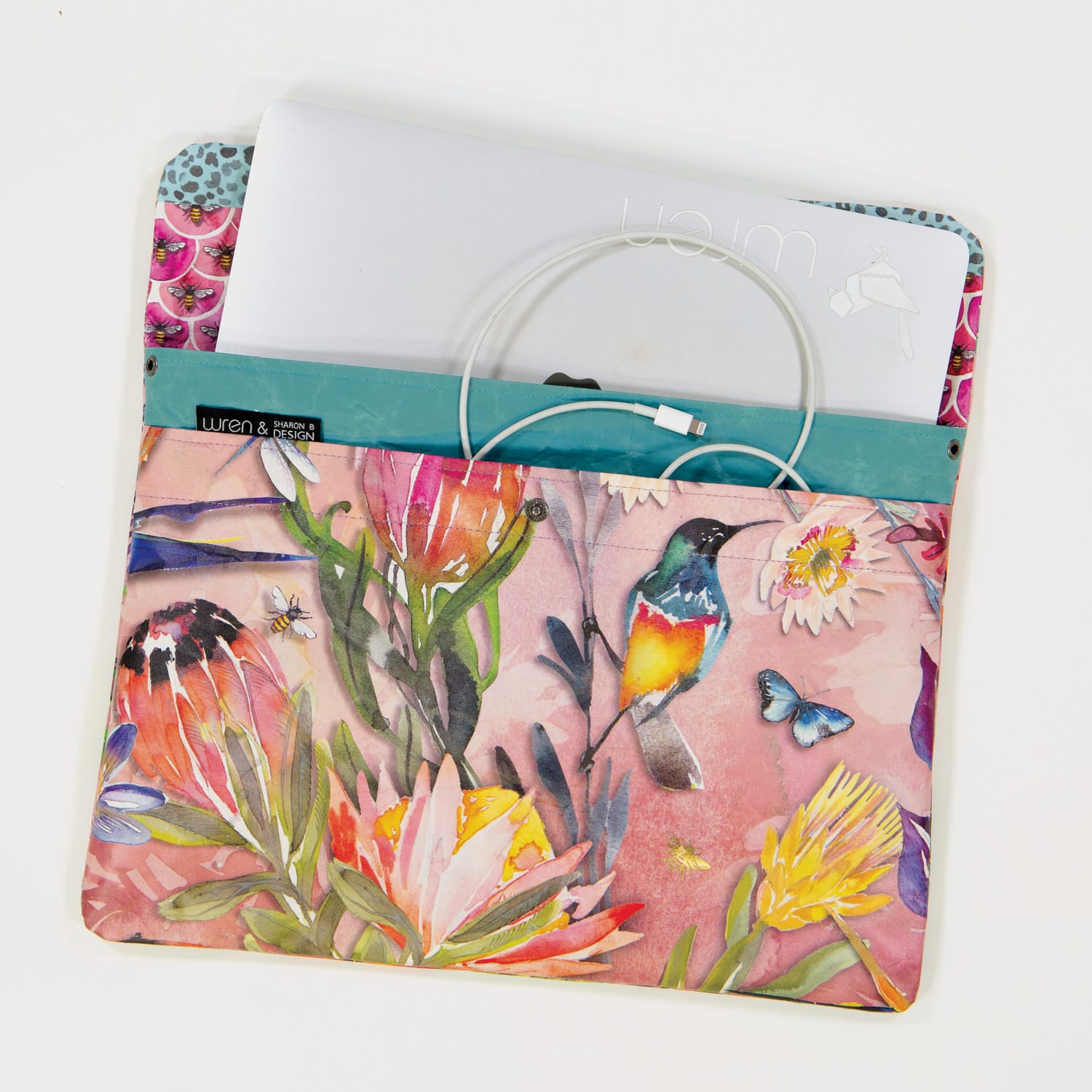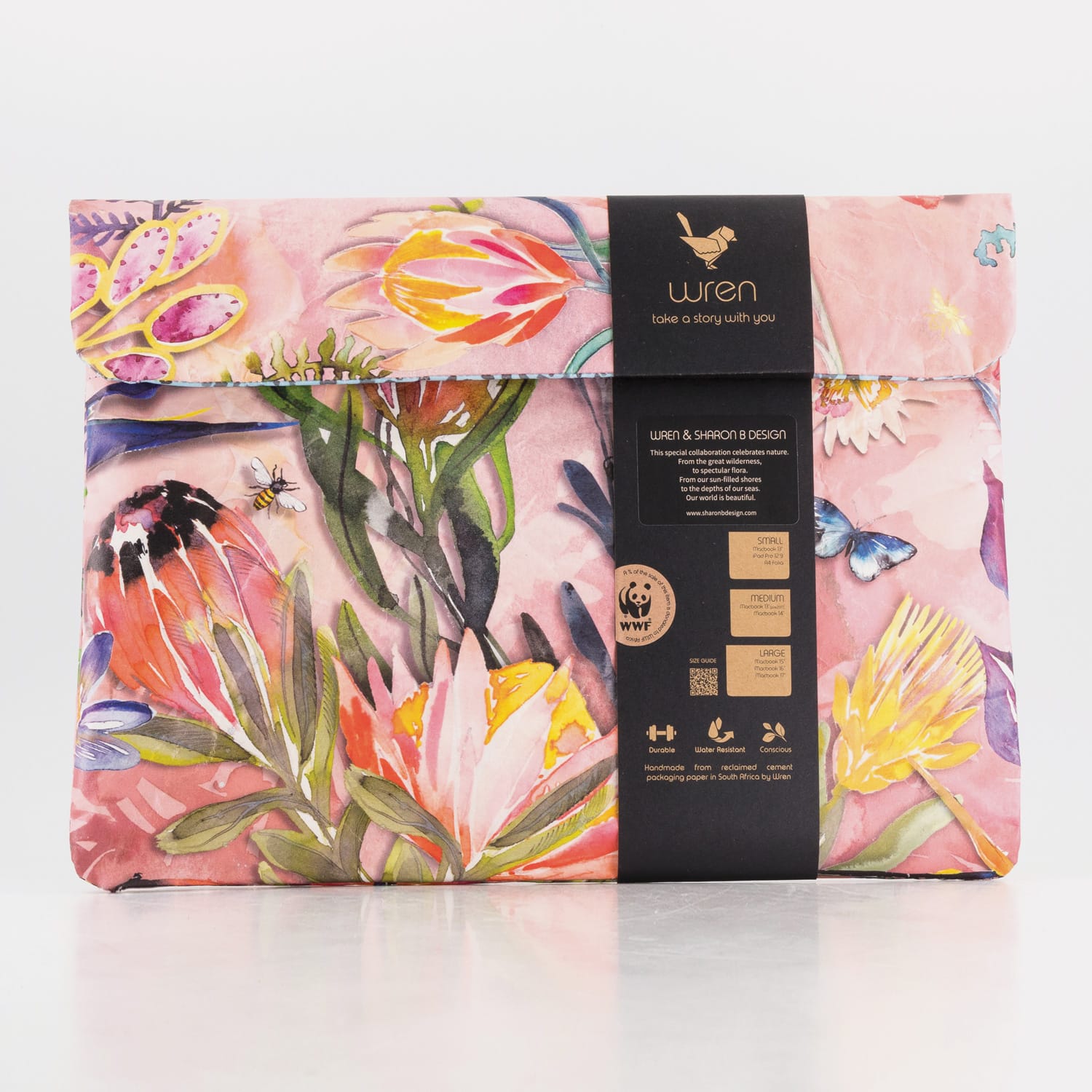 The Botanical Laptop Sleeve is made out of digitally printed reclaimed paper, fused for strength, padded to protect, and coated to be water-resistant.