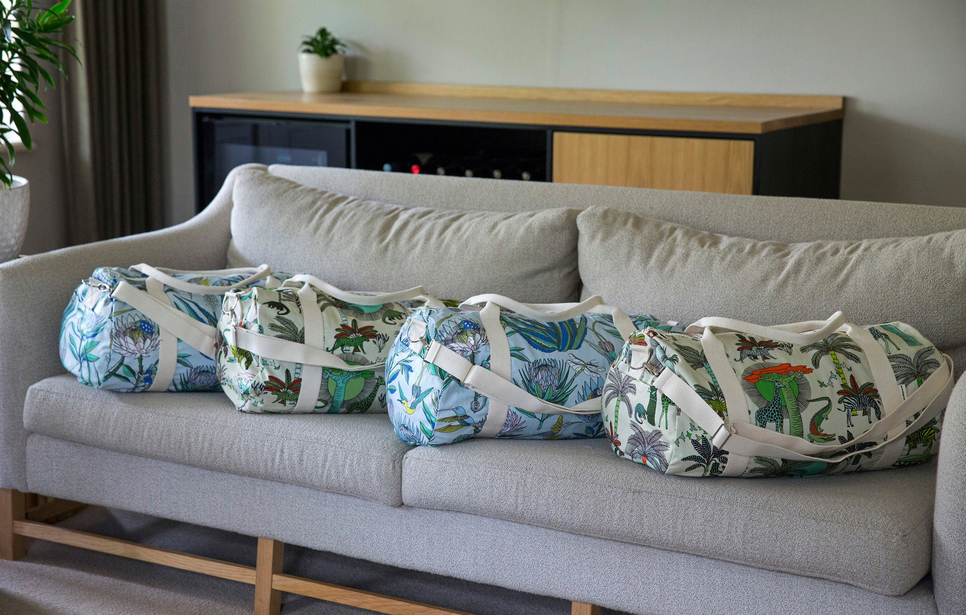 A weekend away! Yay! And here's a bag that will only add to the cheer, with it's brightly coloured prints. Made with 100% cotton canvas and lined with dark grey cotton twill. Features an adjustable shoulder strap and an outside pocket. Dimensions: L52.5cm x W27.5cm x H27.5cm